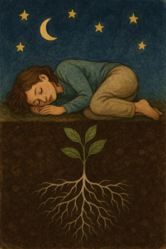 Even in the darkest soil, roots quietly reach for water and light—trust that something within you is doing the same, even now. Rest is not idleness; it’s how the soul gathers strength for whatever is next. You are not behind. You are becoming. Would you like a gentle poem or image to carry into sleep?