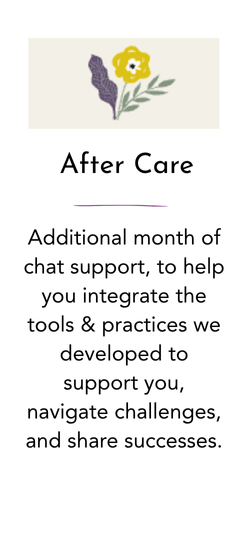 To ensure you’re supported after our 4-6 months of working together, there's an additional month of chat support, to help you integrate the tools and practices we developed to support you, navigate challenges that arise, and share successes as you live forward from your loss, into a life that feels good again.